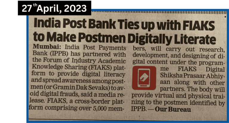 Who better than a postman, one of the most trusted figures in a village, to drive digital financial literacy? With this insight, to amplify public awareness through nationwide outreach, we entered into a partnership with India Post Payments Bank on 27th April, 2023. As part of this collaboration, FIAKS took on the responsibility of designing comprehensive Digital Financial Literacy Content tailored to the needs of rural communities. This training material in video and pdf format was aimed at equipping Postmen and ग्रामीण डाक सेवक with essential digital skills, empowering them to become Digital मार्गदर्शक who would, in turn, disseminate this knowledge and foster digital empowerment across villages in India.